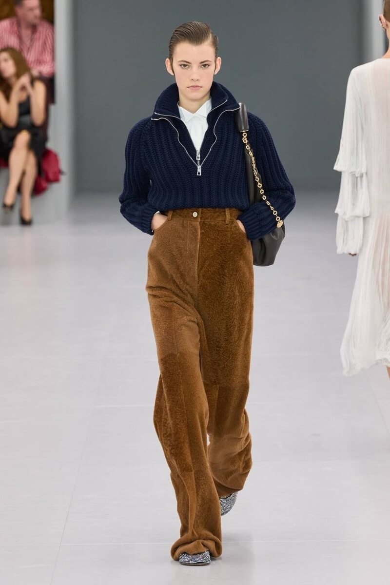 Текстура — блеск, пайетки, винил и глянец в сочетании с уютным вельветом и кашемиром.